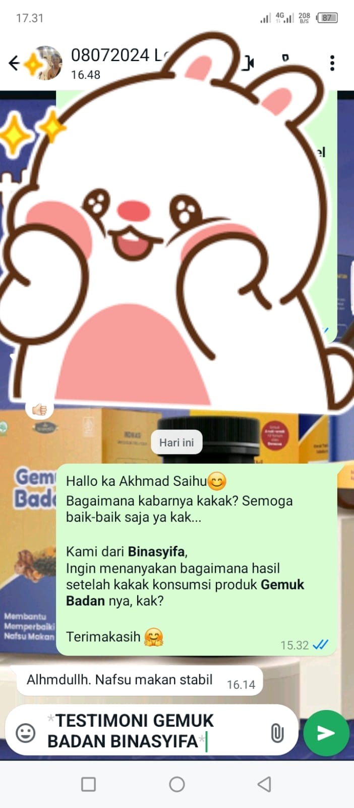 Jangan khawatir, karena Herbal Penggemuk Badan hadir sebagai solusi alami yang membantu meningkatkan nafsu makan dan mendukung pterumbuhan si kecil!
