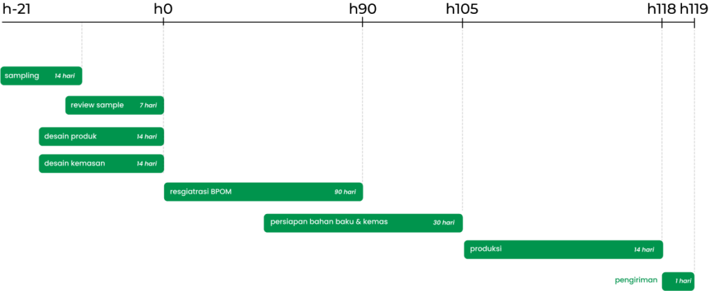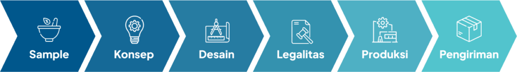 Mulai dari formulasi, produksi, desain kemasan, izin edar, hingga pengemasan